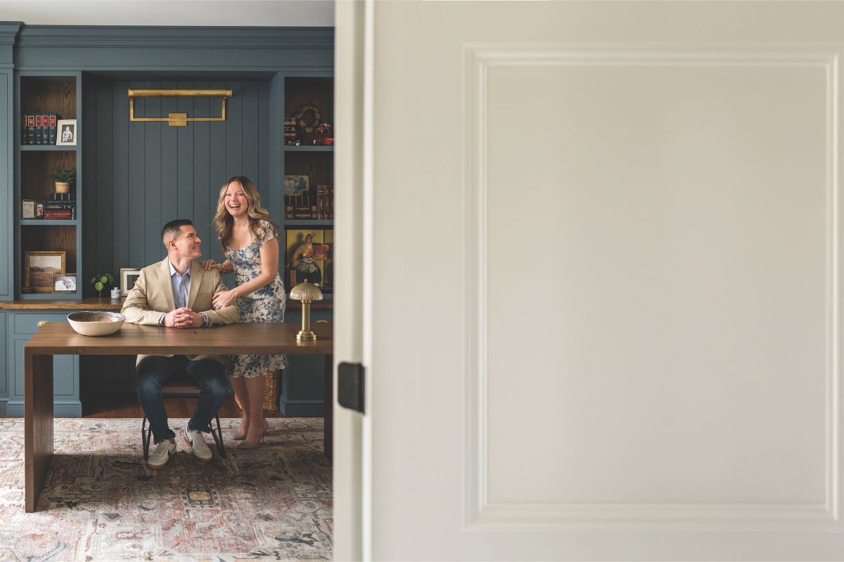 Nick Raup’s employer, healthcare technology brand e4health, opted to divest much of its physical office space. As its senior vice president, Raup elected to remain fully remote. His first workspace consisted of a refinished desk purchased from Facebook Marketplace, which he stationed in the corner of the family’s formal living room. “At that time, we didn’t have a home office, and his work meetings were frequently and embarrassingly interrupted by our children—and me, from time to time,” says Raup’s wife, Leah. “The worst was when I walked behind him wearing a nightgown while he was on a video call with the CEOs of multiple large healthcare systems. Mortifying!”