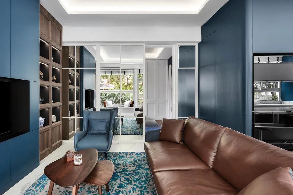 Mr Puah said the owner likes timber elements and the colour blue, and appreciates classical designs. With this in mind, Mr Puah focused on an aesthetic that is clean and modern, but with classical accents.